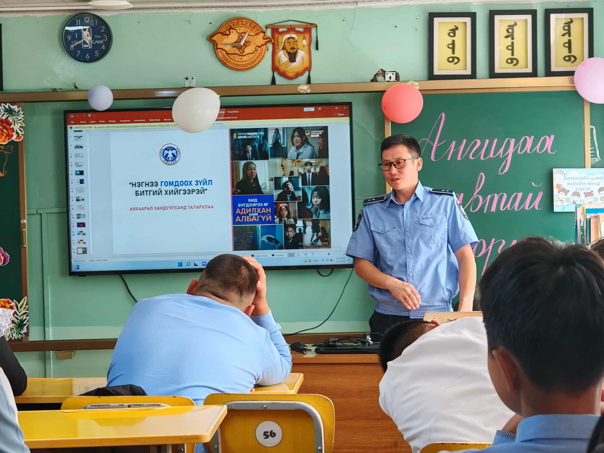Заамар сумын Цагдаагийн хэлтсийн Хүүхдийн асуудал хариуцсан мэргэжилтэн, цагдаагийн дэслэгч Д.Дэлэгпунцаг, Гэр бүлийн хүчирхийллээс урьдчилан сэргийлэх мэргэжилтэн, цагдаагийн дэд ахлагч С.Цэвэгсүрэн нар "Хүүхдийн гэмт хэрэг, зөрчлөөс урьдчилан сэргийлэх нь" сэдэвт сургалтыг 8, 9-р ангийн сурагчдын дунд зохион байгууллаа.